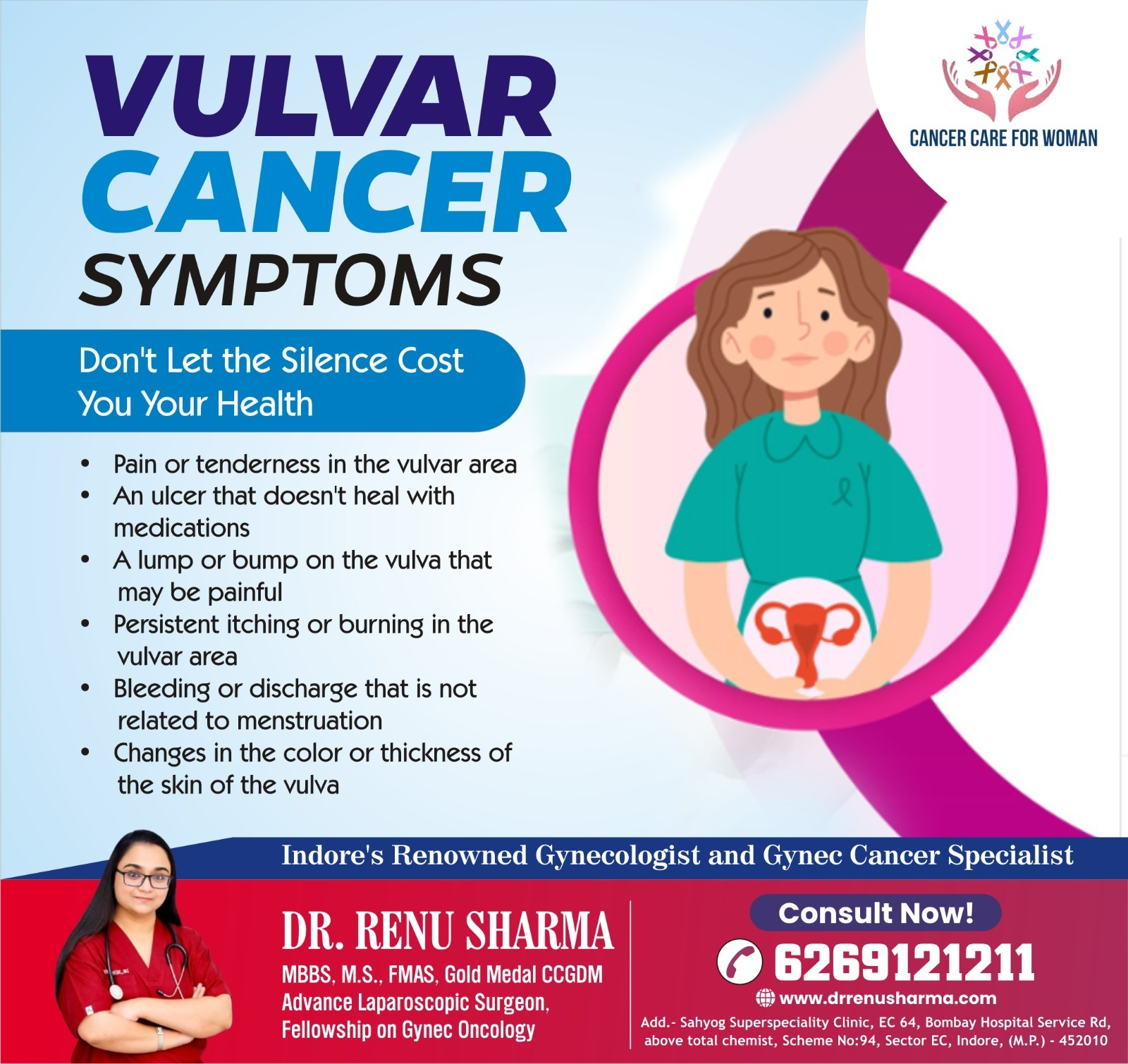 Vulvar Cancer Treatment in Indore Looking for reliable vulvar cancer treatment in Indore? Gynae-Onco Care Clinic offers specialized care for the diagnosis and treatment of vulvar cancer by Dr. Renu Sharma with a compassionate and patient-focused approach. The clinic provides comprehensive evaluation, early detection, and personalized treatment plans based on the stage and severity of the condition. Advanced diagnostic techniques and evidence-based treatment options, including surgery, medical management, and follow-up care, are offered to ensure the best possible outcomes. The team at Gynae-Onco Care Clinic focuses on preserving quality of life while delivering effective cancer care in a safe and supportive environment. Patients receive detailed counseling, emotional support, and continuous monitoring throughout their treatment journey. With modern facilities and experienced specialists, the clinic is committed to delivering trusted gynecologic oncology services. For expert vulvar cancer treatment in Indore, Gynae-Onco Care Clinic provides dedicated care, timely intervention, and long-term support for women’s health.